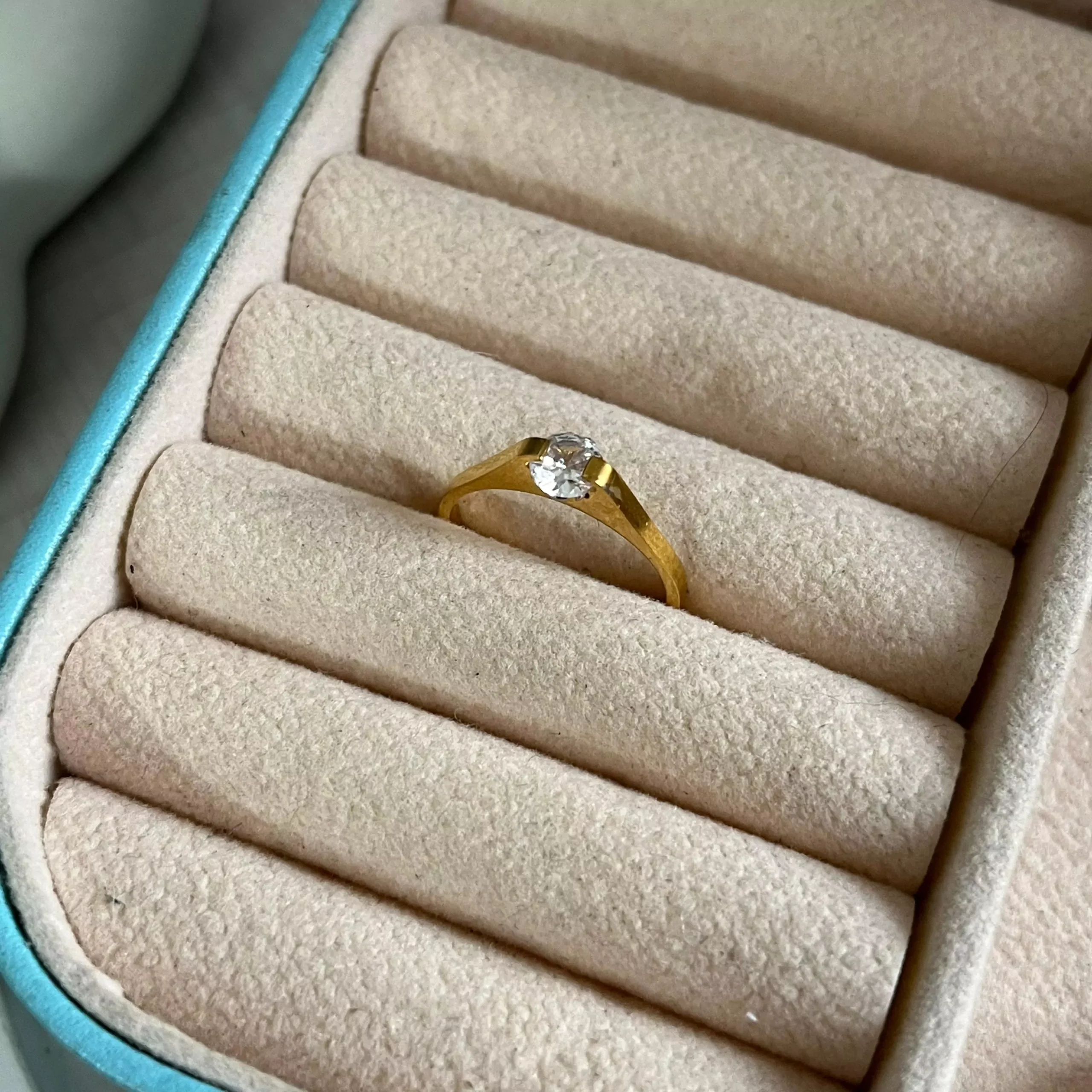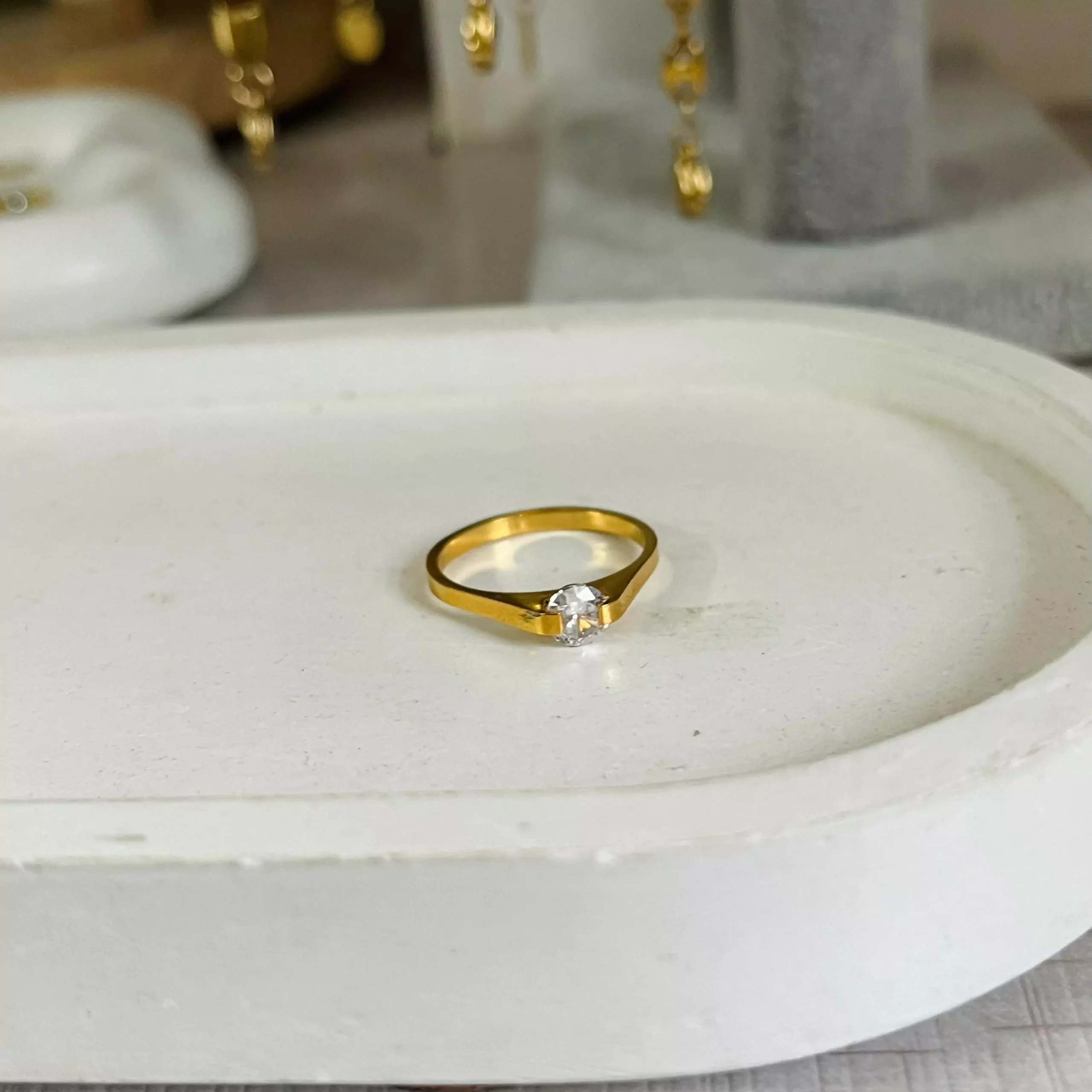 Anti tarnish Waterproof Gold plated Size chart-1.65cm= 6 size 1.76cm= 7 size 1.8 cm= 8 size Compare with the diameter of the ring tht fits u well
